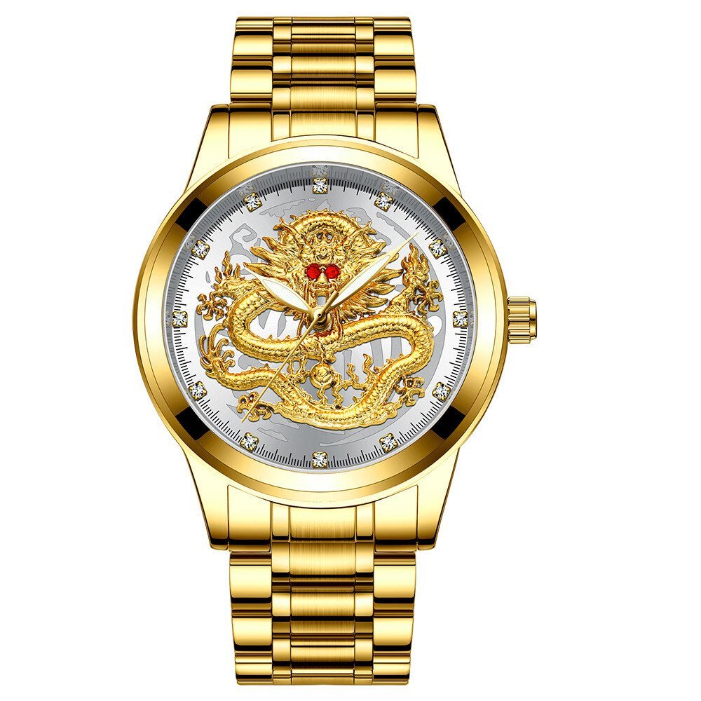 The novel, bold and unique design. Cool style special dragon designer watch, luxurious golden dial, 3D dragon sculpture.Let you shine in the crowd! Simple and elegant style, A perfect gift for any gift giving occasion: anniversary, business gift, birthday,Anniversary,Thanksgiving Day etc.