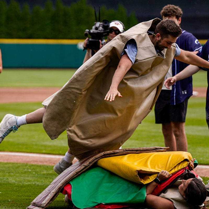 This set perfectly simulates the burger production process, and the gameplay is creative, which is guaranteed to make the atmosphere instantly ignite! At the beginning of the game, a player puts on the soft lower layer of the burger bread, sprints from the starting point to the end, and then "takes position" and lies down to become the "base" of the burger. Then, the other players will take turns to play the role of "ingredient porters", picking up realistic mats such as a slice of meat, a slice of cheese, a piece of lettuce, and a piece of bacon from the starting point (only one side dish mat can be taken at a time), and quickly run to the "lower bread" and carefully stack the side dishes on it. When all the delicious ingredients are stacked, another player puts on the upper bread slices and "jumps" on the layers of deliciousness to complete the final assembly of the giant burger!