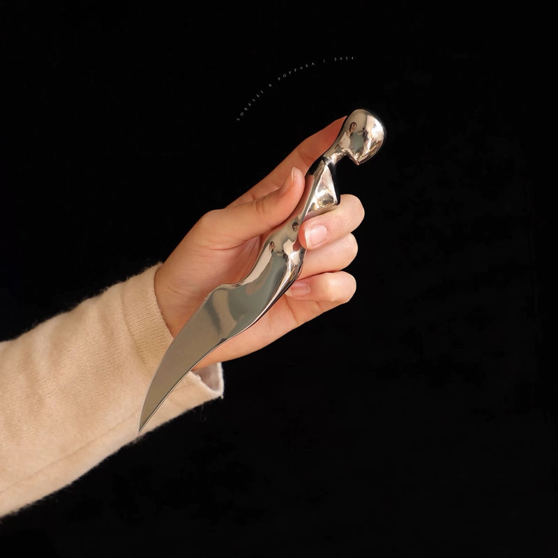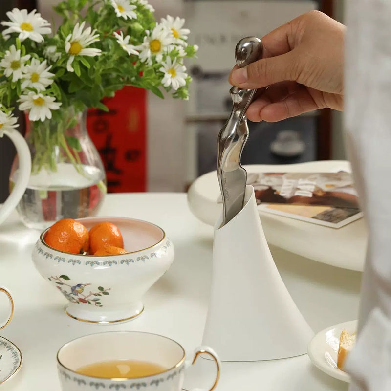 This simple knife is not only a practical tool, but also a creative home art piece. The handle is designed like an elegant little woman, and when paired with a dedicated stand, it looks like a mini sculpture wearing a skirt, adding a touch of chic fun to your desktop.
