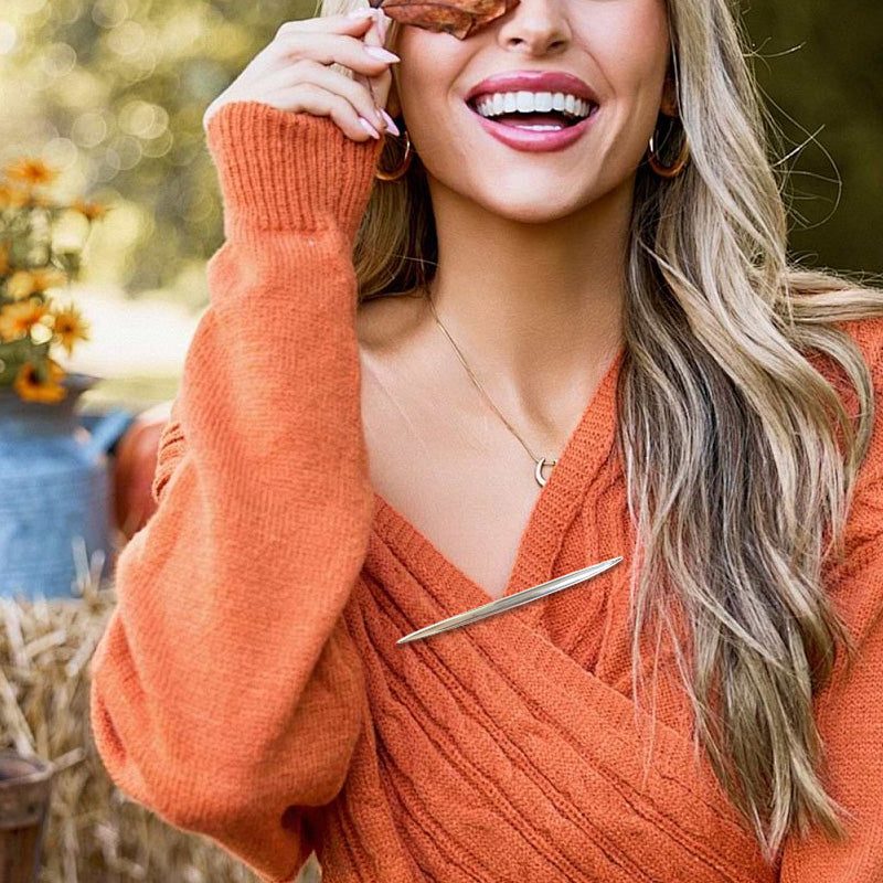 It may seem inconspicuous, but it can save your outfit at a critical moment! This simple one-line brooch is not only a fashionable embellishment, but can also adjust the waist of clothes, gather the hem of skirts, and modify lines, making your look more fitting and stylish!